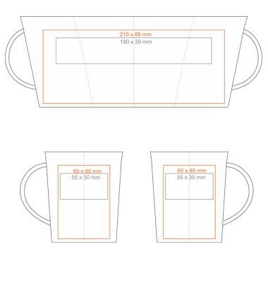Nadruk na uchu (90x10 mm) Nadruk wewnątrz (ścianka) (50x20 mm) Nadruk na spodzie (zewn.) (ø35 mm) Nadruk złotem Nadruk srebrem Nadruk przez rant Personalizacja |